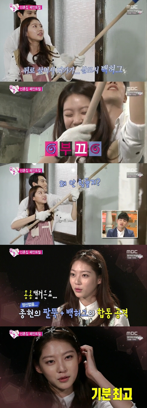 이날 공승연은 이종현과 함께 신혼집 근처 마트에서 장을 본 후 저녁식사 준비에 나섰다. 흰 셔츠에 앞치마를 두른 이종현을 본 공승연은 "진짜 셰프 같다. 와이셔츠 입고 요리하고 있으니까"라며 좋아했다.
