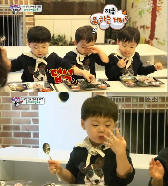 어떤 옷을 입고 나와도 항상 귀여운 대한-민국-만세지만, 이날은 더욱 앙증 맞은 티셔츠를 입고 등장했어요. 블랙 컬러 바탕에 섬세하게 그려진 안경 쓴 강아지 프린팅이 보는 이로 하여금 바보미소를 짓게 하네요. 커플템이나 단체 아이템으로도 유용한 이 제품은 엔아이아이(NII)의 맨투맨티셔츠. 색깔 별로 강아지의 종류가 달라 마음에 드는 것을 선택할 수 있어요. 품번은 NNUALRS1721, 가격은 2만원대입니다. <스포츠조선 연예패션팀>