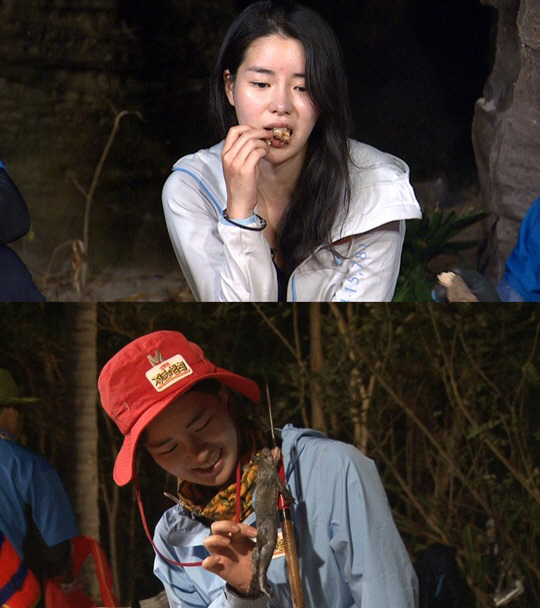 '정글의법칙' 임지연이 여배우 이미지를 벗고 털털하게 쥐고기 먹방을 선보이며 놀라움을 자아낸 가운데, 이번엔 개구리 먹방을 선보인다.