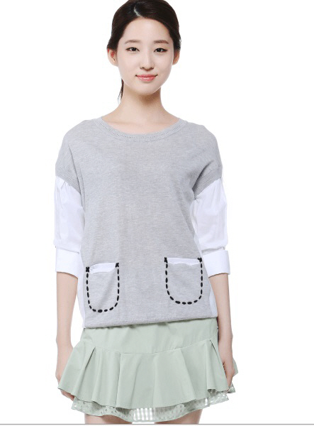 KBS2 '후아유-학교2015'의 여주인공 김소현은 나이에 걸맞는 소녀답고 풋풋한 룩을 주로 선보이는데요, 4회에서 역시 하늘하늘한 느낌이 살아있는 롱티셔츠를 입고 등장했습니다. 마치 그레이컬러 티셔츠와 화이트 블라우스를 레이어드해놓은 듯한 느낌이 매력적이네요. 스티치 느낌의 주머니 디테일 포인트까지. 오즈세컨의 제품. 품번은 2WMP2KUE0500, 18만 8,000원입니다. <스포츠조선 연예패션팀>