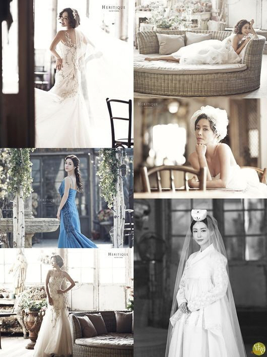 또 순백의 웨딩드레스 화보뿐만 아니라 긴 헤어스타일과 시원한 컬러의 이브닝드레스까지 완벽히 소화하는 동시에 단아한 한복 맵시까지 선보이는 등 고운 새 신부의 분위기를 과시하고 있다.