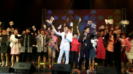 최근 발표된 태진아와 강남의 듀엣 곡 '전통시장'은 서민경제 활성화를 위한 재래시장 일주를 통해 전국 방방곡곡으로 전파돼 국민가요로 급부상하고 있다. 이날 디너쇼 무대에서 팬들과 태극기를 흔들며 이 곡을 합창하는 장관이 펼쳐져 그 의미를 더했다.