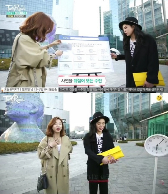 Olive '테이스티로드 2015'에서 리지는 올 블랙컬러를 활용한 시크 룩을 선보였습니다. 칙칙할 수 있는 느낌에 화사한 옐로우컬러의 클러치를 매치하여 포인트를 주었네요. 화사한 색감으로 스타일리시함과 발랄함 모두 잡을 수 있습니다. 루이까또즈의 제품. 품번은 HJ1LO06YE, 가격은 32만원대입니다. <스포츠조선 연예패션팀>