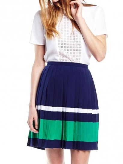 팬 사인회 현장에 등장한 미쓰에이 수지의 모습입니다. 수지는 깔끔한 실루엣의 화이트 블라우스를 활용한 소녀감성 룩을 선보였습니다. 네이비와 화이트, 그리고 그린 컬러의 배색이 돋보이는 주름 스커트에서 발랄한 느낌이 가득 묻어나네요. 바람이 불면 살랑살랑거리는 재질감으로 청순함 또한 가득 어필할 수 있겠어요. 끌로디피에로의 제품. <스포츠조선 연예패션팀>