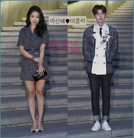 5월 4일 월요일 서울 동대문 디자인 플라자(DDP)에서 열린 '샤넬 2015/16 크루즈 컬렉션'에 배우 박신혜와 이종석이 나란히 참석했습니다. 그들은 지난 1월 인기리에 종영한 SBS 드라마 '피노키오'의 남녀 주인공으로 찰떡 호흡을 보여줬었죠. 그 이후로도 아웃도어 의류광고, 화보 등을 통해 지속되던 '환상 케미'가 결국 '샤넬 크루즈컬렉션'까지 이어졌네요. 의도한 듯 아닌듯, 커플룩처럼 보이는 두 사람의 패션을 한번 분석해봤습니다.