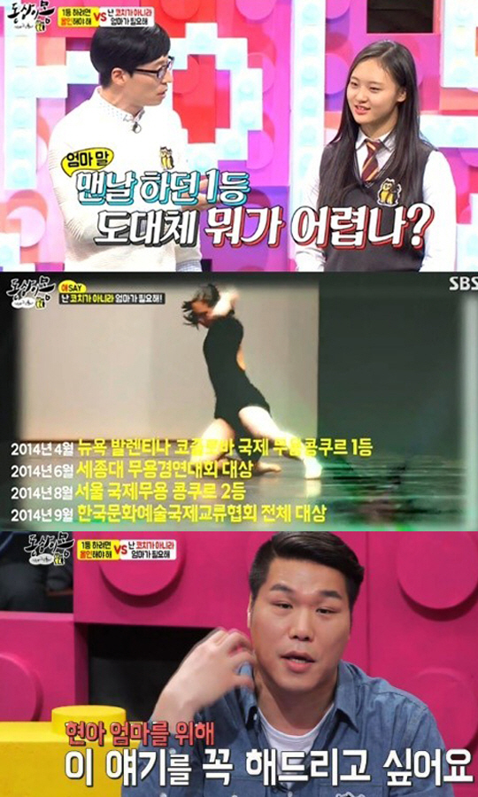 올해 고 2인 김현아는 현대무용을 하며 국내외 대회에서 수상하며 큰 활약을 펼치고 있다. 하지만 김현아의 어머니는 하루에도 몇번씩 몸무게를 재보라 다그치며 코치처럼 엄한 모습을 유지했다.
