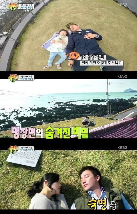 10일 방송된 KBS 2TV 예능프로그램 '해피선데이-슈퍼맨이 돌아왔다'에서는 엄태웅이 딸 지온 양을 데리고 영화 '건축학개론' 촬영지인 한 카페를 찾는 모습이 그려졌다.