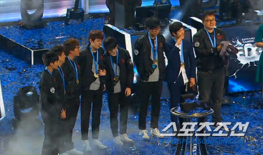 결국 경기는 초반 주도권을 잡은채 큰 킬데스를 벌려나갔던 EDG에게 넘어갔다. EDG는 2세트와 마찬가지로 저돌적인 마오카이의 공격적인 플레이를 앞세워 승리를 거뒀으며 우승까지 단 한세트만 남겨뒀다.