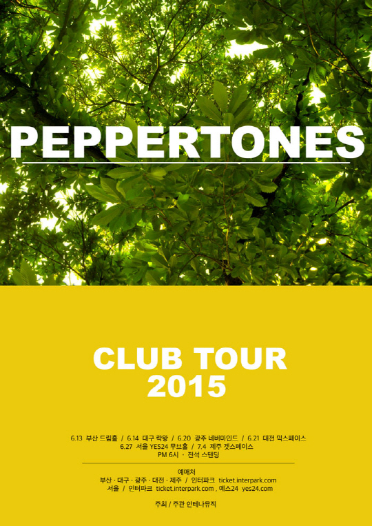 올해 페퍼톤스는 부산(6/13)을 시작으로, 대구(6/14), 광주(6/20), 대전(6/21), 서울(6/27), 제주(7/4) 등 전국 6개 도시에서 '페퍼톤스 클럽투어 2015'를 연다. 페퍼톤스는 올해 제주 지역을 추가하는 등 더 다양한 곳에서 팬들과 호흡할 예정이다.