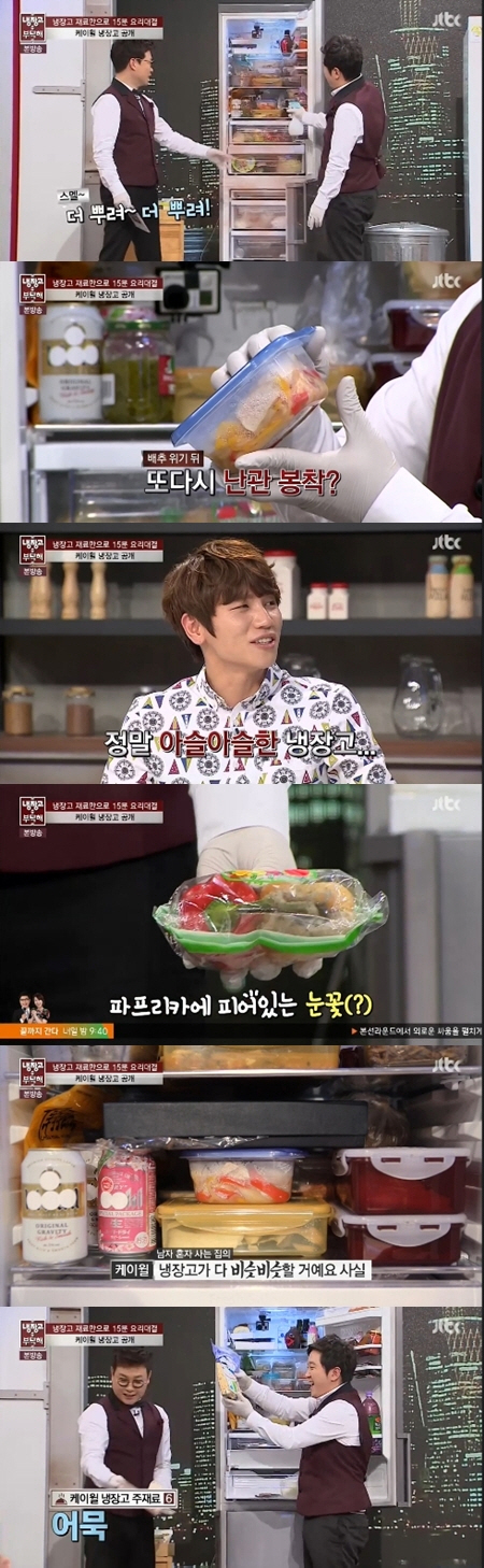 케이윌은 5월11일 방송된 JTBC '냉장고를 부탁해' 26회에서 역대급 냉장고를 선보였다.