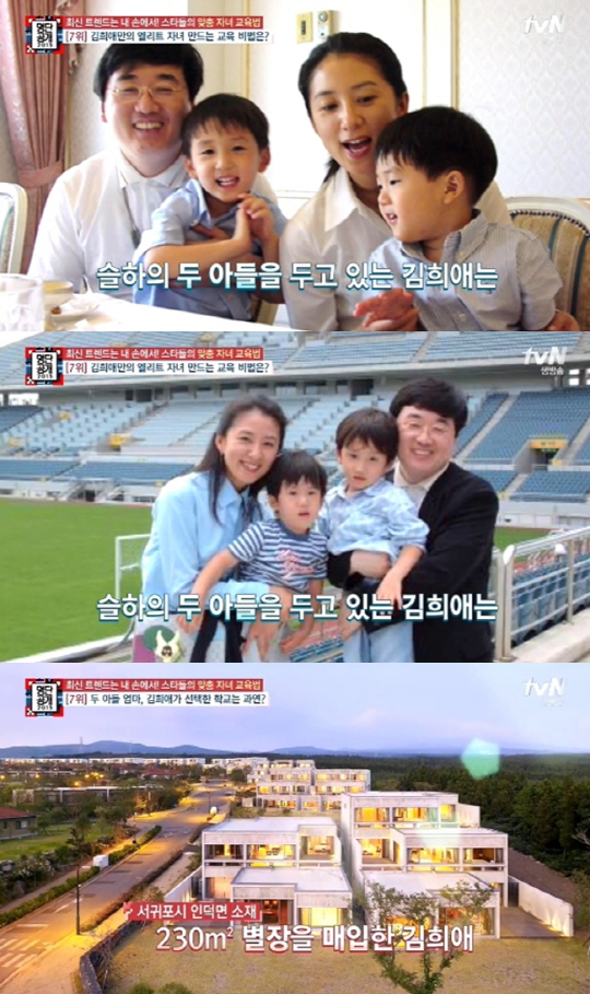 김희애는 5월11일 방송된 tvN '명단공개 2015'에서 상위 1% 스타 자녀교육법 7위로 선정됐다.