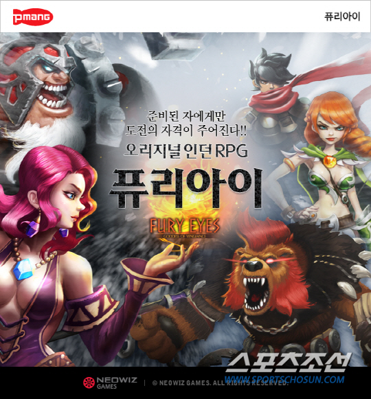 네오위즈게임즈(대표 이기원)는 ㈜이엑스피백(대표 채윤호)에서 개발한 신규 모바일게임 '퓨리아이(FURY EYES)'가 정식 출시에 앞서 사전 테스트를 진행한다고 13일(수) 밝혔다.