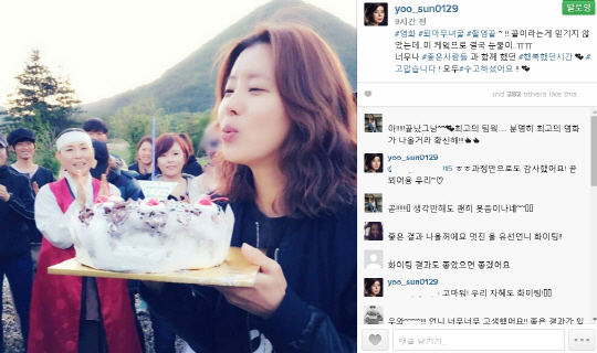 14일 새벽, 유선은 자신의 인스타그램을 통해 "영화 퇴마: 무녀굴 촬영 끝 ~ !! 끝이라는 게 믿기지 않았는데..이 케?揚막 결국 눈물이.."라는 글과 스태프들이 준비한 케이크의 촛불을 끄며 행복한 미소를 짓고 있는 사진을 게재했다.
