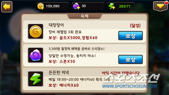 숙제 콘텐츠는 일일 퀘스트 개념으로, 던전의 특정 횟수 클리어나 캐릭터들의 성장, 장비 레벨업 등이 이뤄지면 적게는 30에서 많게는 100까지의 유저 경험치를 각 카테고리 마다 제공한다. 이를 잘 활용하면 초반에 순식간에 레벨을 올릴 수 있다. 또한 게임 속 친구들을 통해 얻을 수 있는 에너지도 꼭 확인하고 넘어가야 한다. 친구에게 받을 수 있는 에너지 양은 한정돼 있으나 꾸준히 플레이를 이어간다면 큰 도움이 되니 에너지를 주고받을 수 있는 핵심 친구들의 확보는 필수적이다.