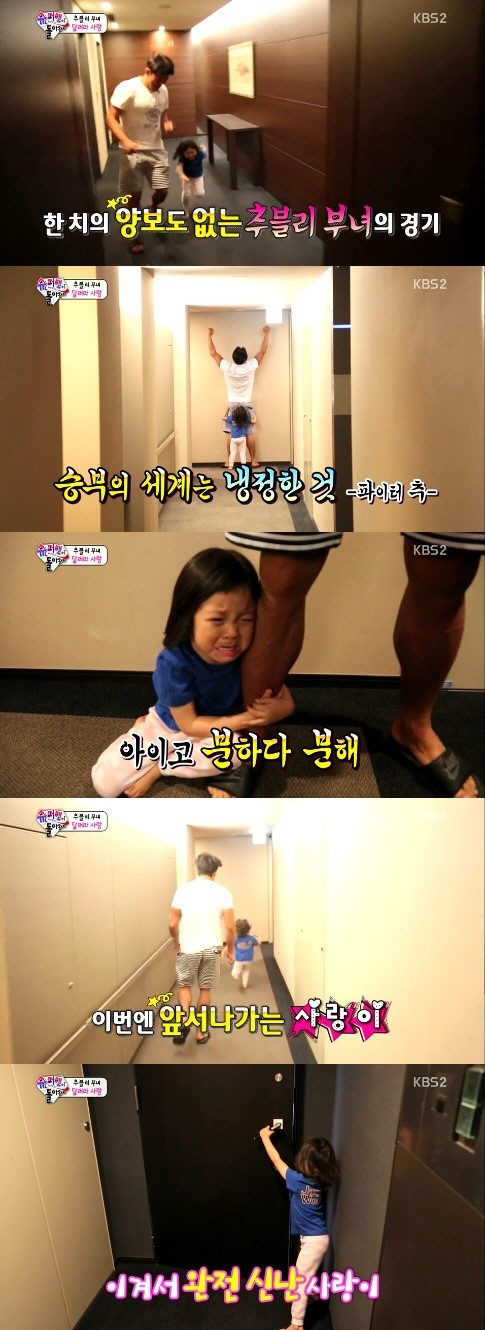 이날 추성훈과 추사랑은 야노 시호를 배웅하고 돌아오는 길에서 달리기 시합을 벌였다.
