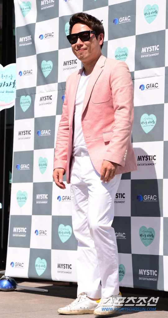 행사장에 등장한 윤종신. 파스텔톤 핑크 재킷을 포인트로 한 화이트 룩이 열살은 더 어려보인다 김경민 기자 kyungmin@sprtschosun.com / 2015.04.25.