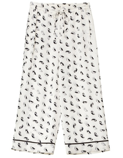 KBS2 드라마 '프로듀사' 2회에서 공효진은 귀여운 패턴이 돋보이는 파자마 팬츠를 선보였습니다. 화이트 바탕에 블랙 올빼미가 가득 그려져 있네요. 허리라인을 돋보이게 리본 디테일로 더욱 깜찍한 매력을 살렸습니다. 길지 않은 길이에 다리가 길어 보이는 효과도 있네요. 럭키슈에뜨의 익스클루지브 라인인 베베슈에뜨의 제품. 가격은 상의와 함께 6만원대입니다. <스포츠조선 연예패션팀>