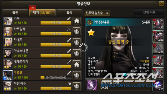 이번 시스템 패치 중 가장 주목할만한 부분은 '영웅 정보의 대기실이 50개에서 100개로 증가했다는 점이다. 전설 영웅을 소지하기 위해서는 지속적인 티켓 습득을 통해 영웅을 진화 후 정수를 추출하는 과정을 겪게 되지만 광산 참가 등 사용중인 영웅 등 고정 영웅의 존재로 대기칸의 활용이 쉽지 않았다. 이번 업데이트는 지난 업데이트 때 적용된 '영웅 연속 고용' 시스템에 대한 편의를 감안한 것으로 티켓 확보를 제외한 전설 영웅 확보 과정에 가장 큰 불편을 덜은 셈이다.