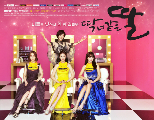 한편, '딱 너 같은 딸'은 딸 셋을 최고의 '알파걸'로 키운 홈쇼핑 호스트 '홍애자'와 말끝마다 해병대 정신을 자랑하지만 현실은 주부습진에 시달리는 홀아비 '소판석', 그리고 금수저 물고 태어난 스펙을 가졌지만 어딘지 어수룩한 '허은숙' 여사네 등 세 집안이 사돈으로 엮이면서 벌어지는 이야기를 그린다. '달래네 집'(2004) 등 시트콤 집필을 주로 해 왔던 가성진 작가가 대본을 맡았고, '개과천선'(2014), '메디컬 탑팀'(2013) 등을 젊은 감각으로 연출한 오현종 PD가 처음으로 연속극에 도전한다. 이수경, 강경준, 길용우, 김혜옥, 정보석, 박해미, 이병준, 우희진, 이지훈, 정혜성 등이 출연한다. 18일 첫 방송. 김표향 기자 suzak@sportschosun.com