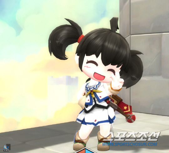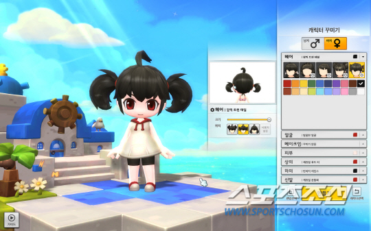 '메이플스토리2'를 시작하면 가장 먼저 눈에 들어오는 것이 대두를 탑재한(?) 2등신 캐릭터다. '메이플스토리2'의 캐릭터는 굿스마일사의 유명 피규어 브랜드 '넨도로이드'를 연상케 하는 귀여움과 깜찍함을 자랑한다. 꽁지머리의 위치까지 자유롭게 조정할 수 있는 기본 캐릭터 생성만으로도 꾸미는 재미가 가득하다.