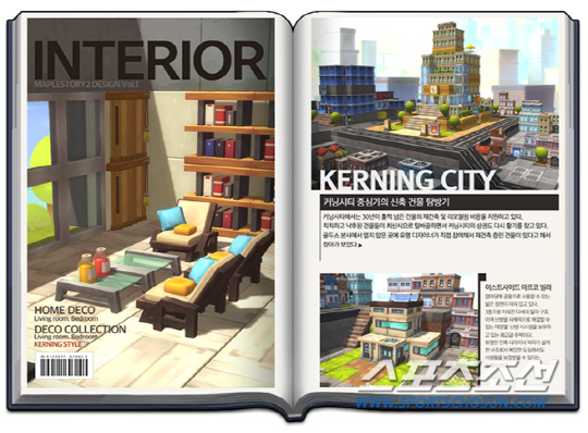 재미있게도 '메이플스토리2'에는 인테리어 전문 잡지가 준비되어 있다. 무작정 자신의 집을 꾸미며 시행착오를 겪는 것도 재미의 한 부분이지만, 처음이라면 게임 내에서 획득 가능한 이 인테리어 잡지를 보고 예제에 따라 인테리어의 첫걸음(?)을 내딛는 것도 즐거운 부분이다. 또한 게이머가 집 값을 쉽게 파악할 수 있도록 부동산 정보 공유 시스템이 '메이플스토리2'에 포함되어 있다.