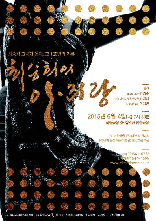 최승희를 사사한 제자 김영순(73)과 이미 7세 때 극립국악원 예악당에서 최승희의 춤을 완벽하게 재현해 화제를 모은 무용 신동 석예빈, (사)문화예술통합연구회 이사장인 김미래가 12년만에 최승희의 춤사위를 선보인다. 최승희의 대표작인 '보살춤'과 '초립동', '도라지', 그리고 전설의 '진주 무희' 독무를 65년만에 3D 홀로그램을 활용해 선사한다. 100년의 시간을 거슬러 한국 무용의 신화를 찾아가는 특별한 무대다.