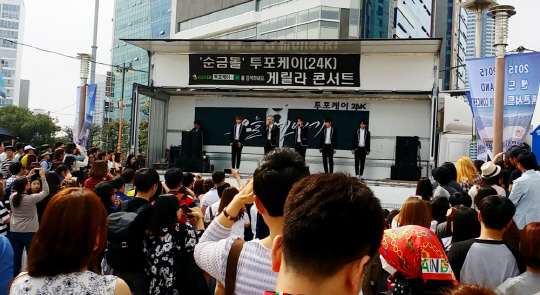 이들이 게릴라 콘서트를 펼친 현장에는 공연 소식을 듣고 전국 각지와 해외에서 찾아온 투포케이 팬들을 비롯해 주말 나들이에 나선 시민들이 한데 몰리며 인산인해를 이뤄 이들이 차세대 '대세돌'임을 입증했다.