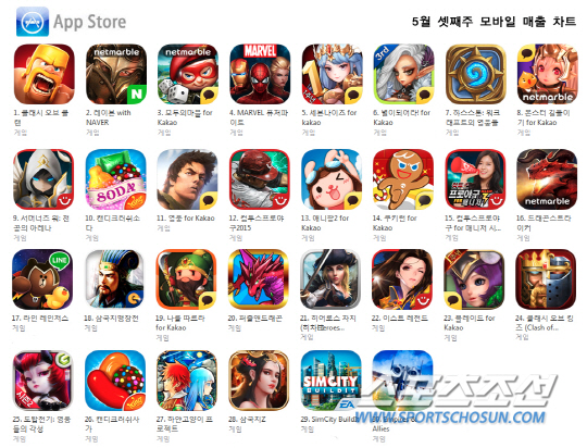'별이되어라'는 애플에서도 매출 순위를 회복하면서 6위에 안착했다. '몬스터길들이기' 역시 업데이트 효과로 8위에 올라섰으며 신작들과 업데이트 작품들이 또 다시 대거 상위권에 입성하면서 '영웅'과 '서머너즈워', '캔디크러쉬소다'는 소폭 순위가 떨어졌다.