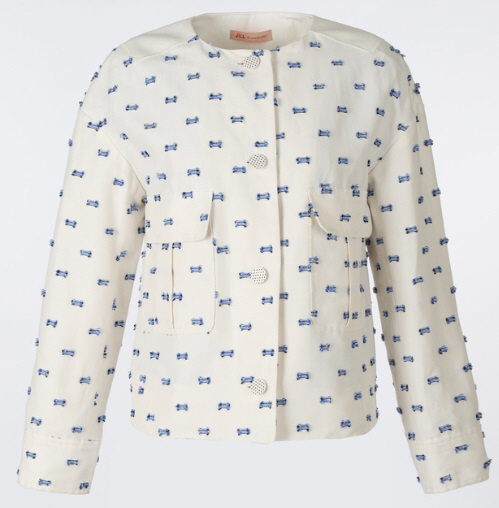 KBS2 드라마 '후아유-학교2015' 7회에서 김소현은 깔끔한 화이트 재킷을 활용한 룩을 선보였습니다. 블루 리본 패치가 전체에 디테일되어 소녀스러운 느낌이 물씬 풍깁니다. 그녀는 진청 데님팬츠와 매치하여 깔끔하고 트렌디하게 연출했습니다. 소매를 걷어 입으니 더욱 스타일리시하네요. 질바이질스튜어트 제품. 품번은 JBJ05B222WT, 가격은 19만 6,000원입니다. <스포츠조선 연예패션팀>
