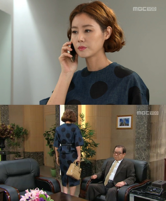 MBC 드라마 '여왕의 꽃' 20회에서 김성령은 빅 도트 패턴이 특징인 블라우스와 스커트를 입고 등장했습니다. 여성스러운 실루엣이지만 진청 데님 소재감으로 캐주얼하고 트렌디한 느낌이 더욱 살아납니다. 그녀는 허리 벨트를 활용하여 늘씬한 몸매라인을 더욱 강조했습니다. 요지야마 모토의 2015 S/S 제품. 상의 품번은 B48-0371, 하의 품번은 S41-037-1입니다. <스포츠조선 연예패션팀>