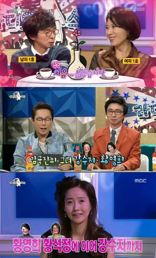 이날 MC들은 게스트를 소개하며 "오늘 게스트분들이 화사하다. 황영희, 황석정에 이어 강수지까지 국진의 여자들이 총출동했다"고 말해 김국진을 부끄럽게 했다. 이어 김구라가 "요즘 어떠냐. 황석정, 얼마전에 황영희도 그렇고 주변에서 너무 짓궂냐"고 묻자 김국진은 "니가 짓궂다"고 응수해 웃음을 안겼다.