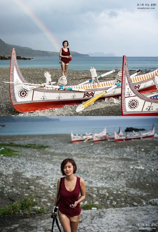 공개된 사진 속 최송현은 화장기 없는 민낯으로 민소매 티셔츠에 핫팬츠를 입고 대만 오키드 아일랜드의 아름다운 정취에 흠뻑 빠져있는 모습이다. 특히 최송현의 등뒤로 선명하게 드러난 아름다운 무지개가 눈길을 끌었다.