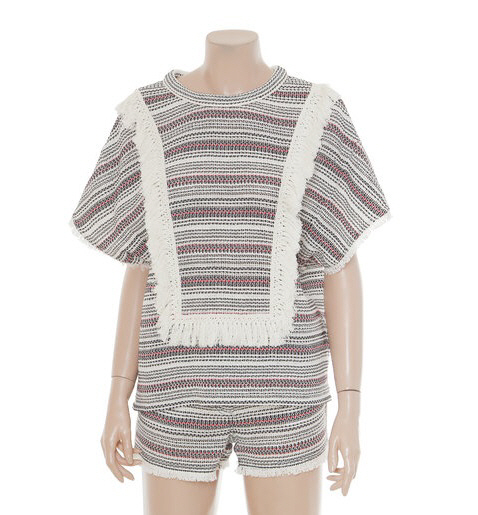영화 '악의 연대기' VIP 시사회에 등장한 씨스타 보라의 모습입니다. 보라는 수술 장식이 에스닉한 느낌을 풍기는 투피스 룩을 선보였습니다. 다양한 색상이 혼합된 라인 디테일과 직모의 짜임이 자연스럽고 건강한 무드를 풍깁니다. 짧은 길이의 팬츠를 발등이 시원하게 드러나는 펌프스와 매치했더니 늘씬한 다리라인이 더욱 돋보이는군요. 르윗의 제품. 상의와 하의 품번은 각각 LEF4WBL250, LEF5WPT250. 가격은 각각 13만원대, 14만원대입니다. <스포츠조선 연예패션팀>