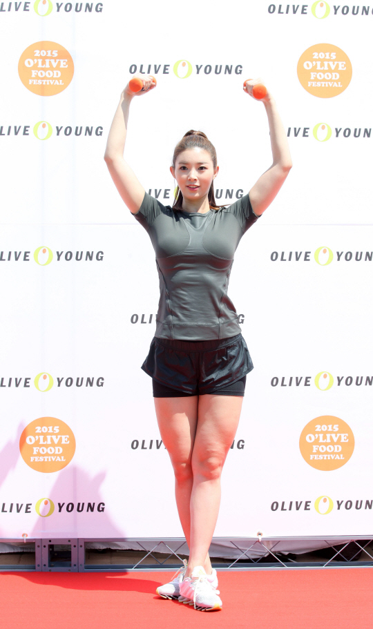 '몸매 종결자' 유승옥이 23일 여의도 서울 마리나 야외광장에서 열린 국내 대표 헬스&뷰티 스토어 '올리브영(www.oliveyoung.co.kr)' 바디 클래스의 일일 바디 멘토로 나서 건강미 넘치는 자신만의 운동법을 공개했다.