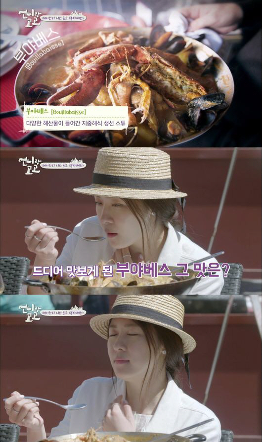 이날 방송에서는 하지원이 남프랑스에 가면 꼭 먹어보겠다고 다짐했던 부야베스를 시식할 계획. 부야베스는 생선, 새우, 가재 등 다양한 해산물이 들어간 지중해식 생선 스튜. 하지원은 직접 검색해 찾은 현지 식당에 전화를 해 미리 식사 예약을 할 정도로 남다른 열정을 드러냈다. 하지원과 전유경은 요리가 등장함과 동시에 감탄사를 연발, 식재료 하나하나의 맛을 음미하며 무아지경에 빠졌다는 제작진의 전언.