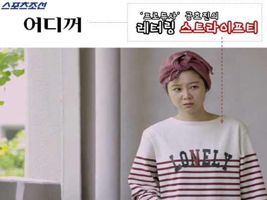 #어디꺼 #스포츠조선 #프로듀사 #공효진 #까칠 #스트라이프 #레터링 #노앙 #머리_수건과_은근_잘어울려 #레드포인트 #패셔니스타는_달라 #수건과도_깔맞춤 #그런데_론리_라니 #나도_론리_이_언니도_론리 #모두가_론리
