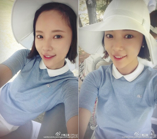 황정음이 자신의 공식 웨이보(weibo.com/jeongeumhwang0125)에 셀카를 공개했다. 생에 첫 골프 라운딩에 나선