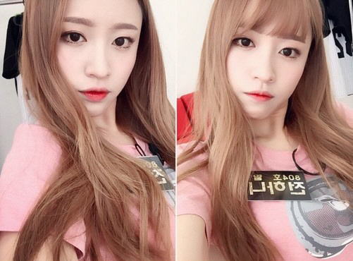 공개된 사진 속 하니는 JTBC 예능프로그램 '크라임씬2' 대기실에서 앞머리를 넘긴 모습과 내린 모습 두 가지를 선보이고 있다.
