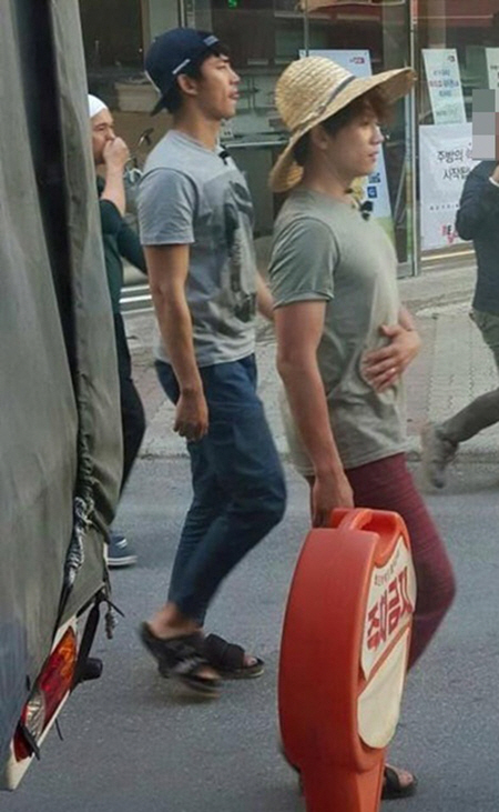 사진에서 지성은 편안한 옷차림에 밀짚모자, 검은색 슬리퍼를 신은 농부패션을 선보여 눈길을 끌었다. 지성의 옆에는 옥택연과 김광규도 나란히 함께해 시선을 사로잡았다.