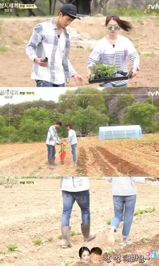 이날 옥택연은 박신혜와 함께 텃밭 가꾸기에 나섰다. 기분이 좋은 옥택연은 박신혜를 도와 열심히 밭을 갈았다. 흙사이에 박혀 있는 돌을 있는 힘껏 집어 던지는가 하면, 대충대충 하려다가도 박신혜의 등살에 못이기는척 일을 했다.