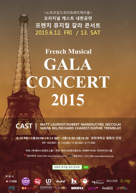 '프렌치 뮤지컬 갈라 콘서트'는 경희대 평화의 전당에서 12일 오후 8시, 13일 오후 2시 30분, 오후 7시 30분 총 3회로 진행된다. 예매는 인터파크와 클립서비스에 진행된다.