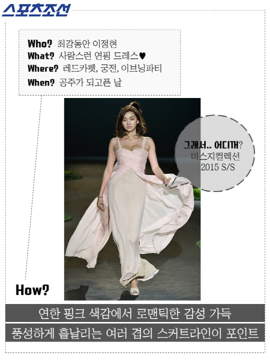 #어디꺼 #스포츠조선 #이정현 #백상예술대상 #연핑크 #레드카펫 #드레스 #로맨틱 #성공적? #사랑스런_공주라고_소개했지만 #장윤주_모델컷은_좀_무섭네 #미스지컬렉션
