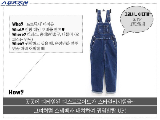 #어디꺼 #스포츠조선 #아이유 #프로듀사 #멜빵바지 #오버롤 #데님 #귀척 #아무리_입고_싶어도_오피스에선_큰일날지도 #SJYP