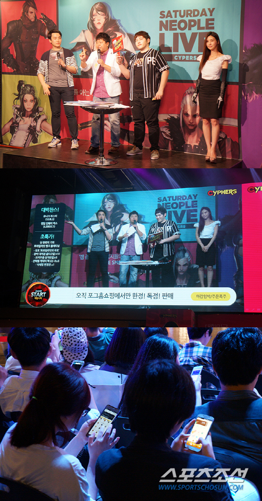 무대 우측의 소무대에서 진행된 홈쇼핑은 정말 홈쇼핑처럼 화면이 꾸며지기도 했다. 아래는 홈쇼핑이 시작하자 핸드폰을 꺼내 들고 구매하는 유저들.