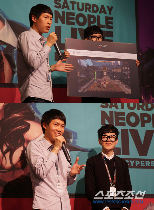 매칭 시스템 개선과 전장 개편 소개를 담당한 정형준 수석 게임 디자이너와 보조를 맡은 '호야' 김맨자. 유저들을 선생님이라고 지칭하는 독특한 언행으로 '미스터 선생님'이란 별명을 얻었다. 주옥같은 어록을 쏟아낸 미스터 선생님에게 애드립이냐고 묻자 자신은 위트있는 남자라며 너스레를 떨었다.
