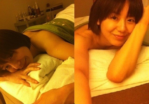 공개된 사진 속에는 옷을 벗고 가운을 덮은 채로 엎드린