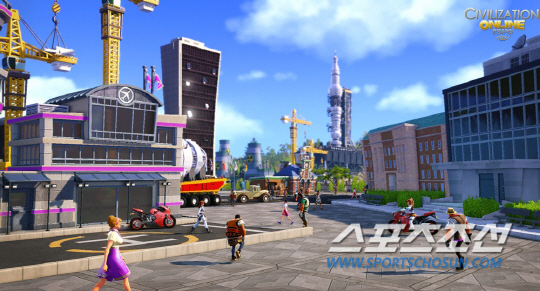 특히, 과학 승리의 상징이라 할 수 있는 우주선과 우주선 발사대 등 '문명 온라인'에서 이용자가 직접 건설하고 만들어 나갈 수 있는 현대시대 문명의 모습이 잘 표현되어 있다.