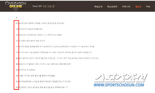 문명온라인은 최근 페이스북과 홈페이지 등에서 다양한 방법으로 유저들과 소통하며 의견을 듣고 게임의 정보를 공유하고 있다. 지난 테스트에 참여한 유저들과 함께 비정상회의를 개최하는 등 유저들의 목소리를 다양한 채널을 통해 듣고 있다.