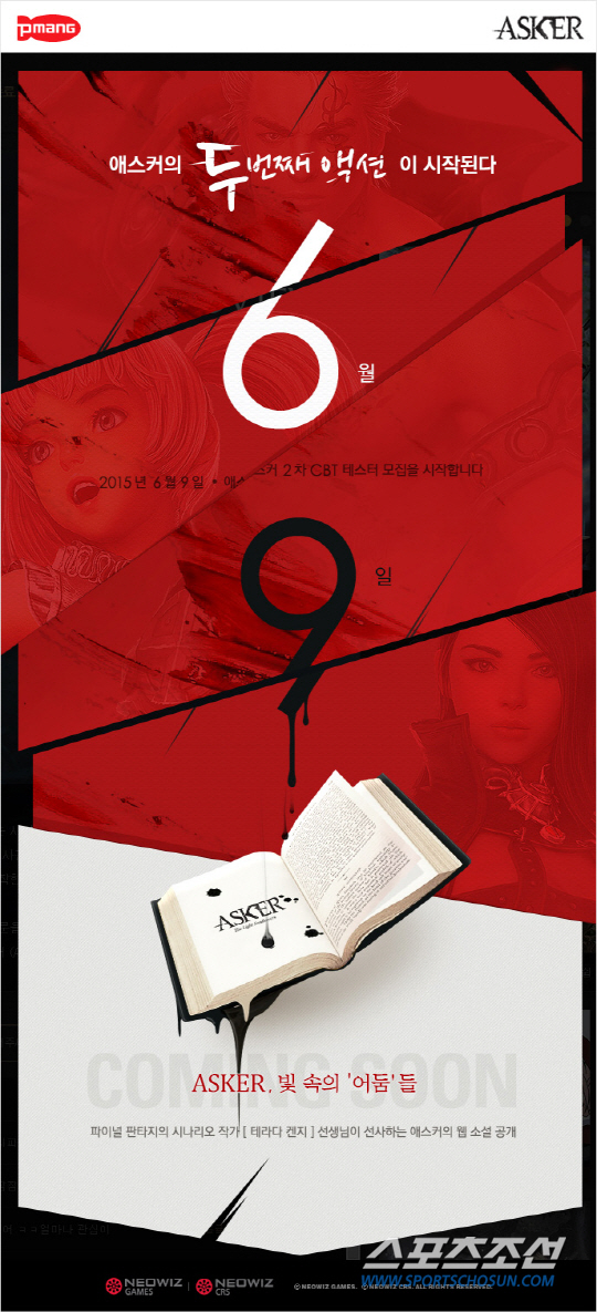 네오위즈게임즈는 자회사 네오위즈씨알에스에서 개발중인 온라인 액션 MORPG '애스커(ASKER)'의 티저 이미지를 통해 2차 비공개 테스트의 참가자 모집 일정을 공개했다.