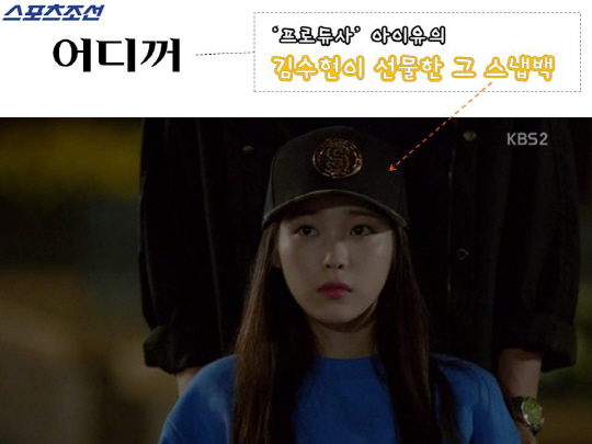 #어디꺼 #스포츠조선 #프로듀사 #아이유 #스냅백 #김수현이_선물한_바로_그_모자 #둘다_머리가_작아 #내가_김수현에게_선물받으면_못쓸지도 #에스엠비_바이_햇츠온